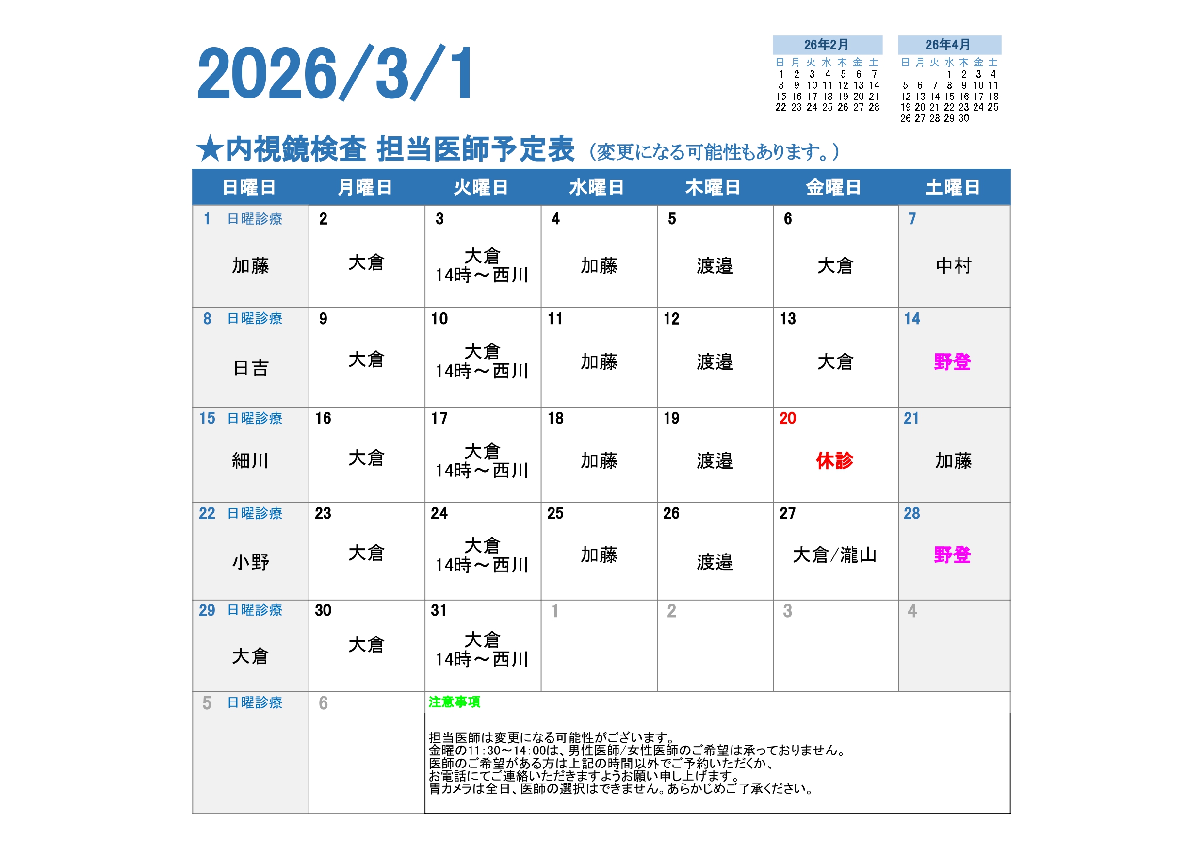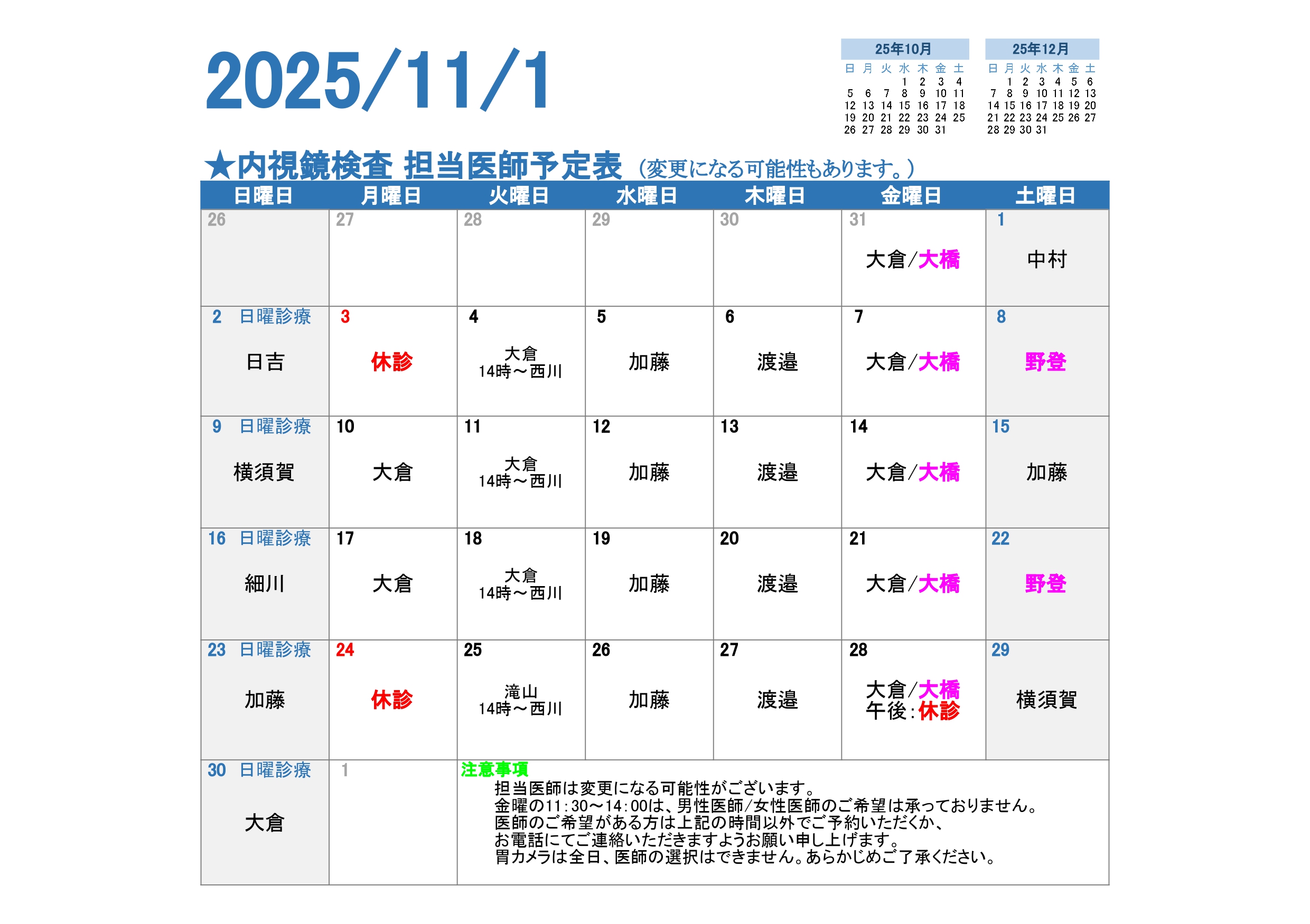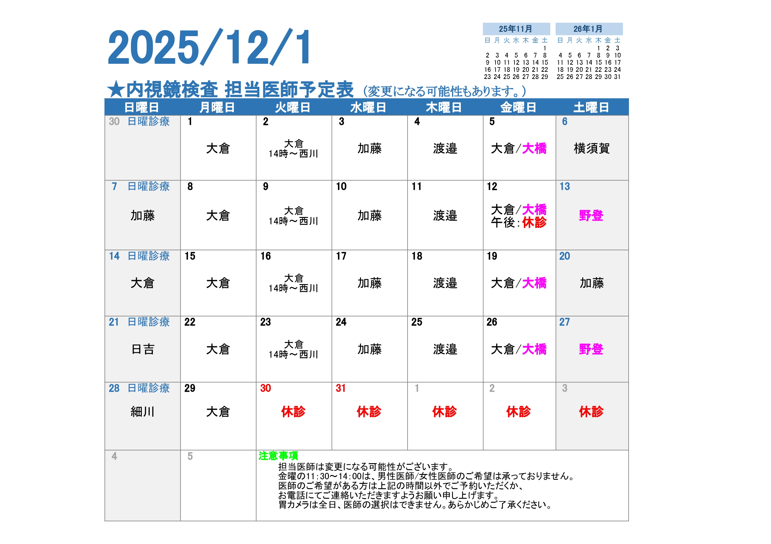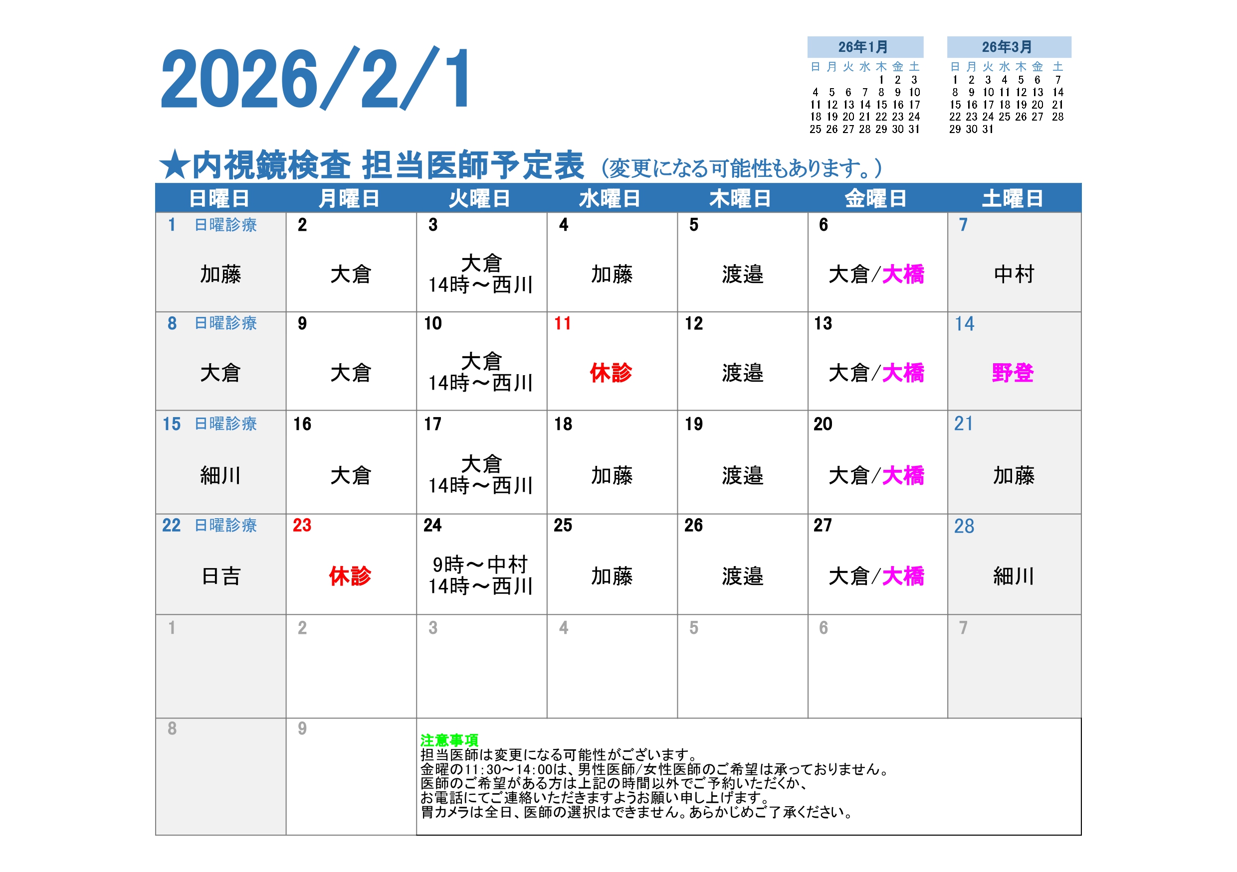 女性の方も安心して胃カメラ・大腸カメラ検査が受けられる体制を整えています。