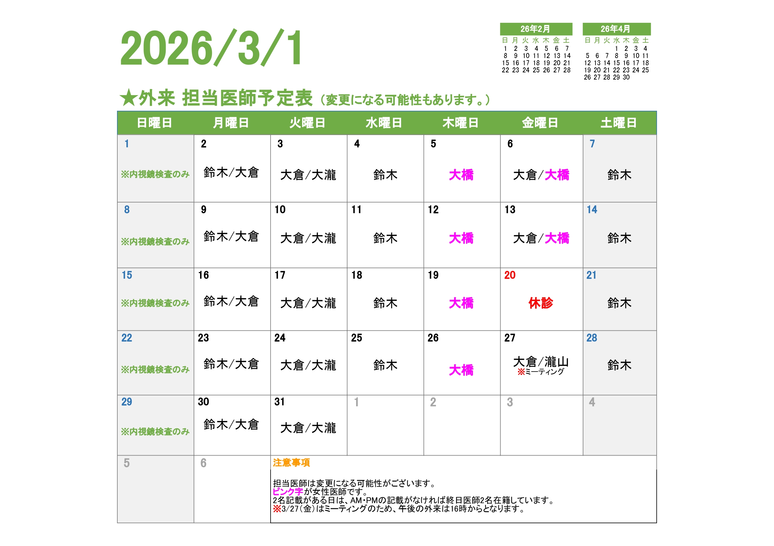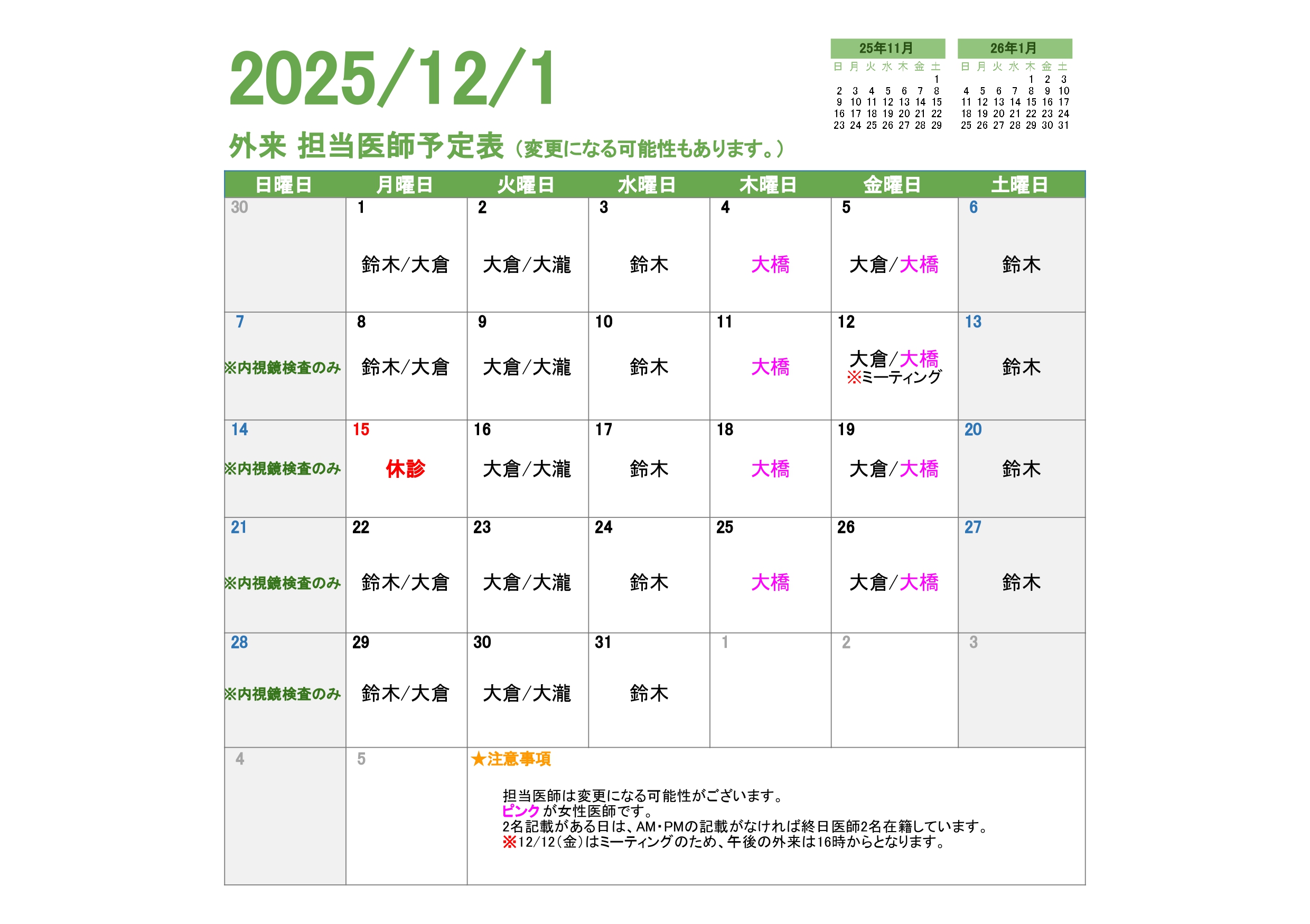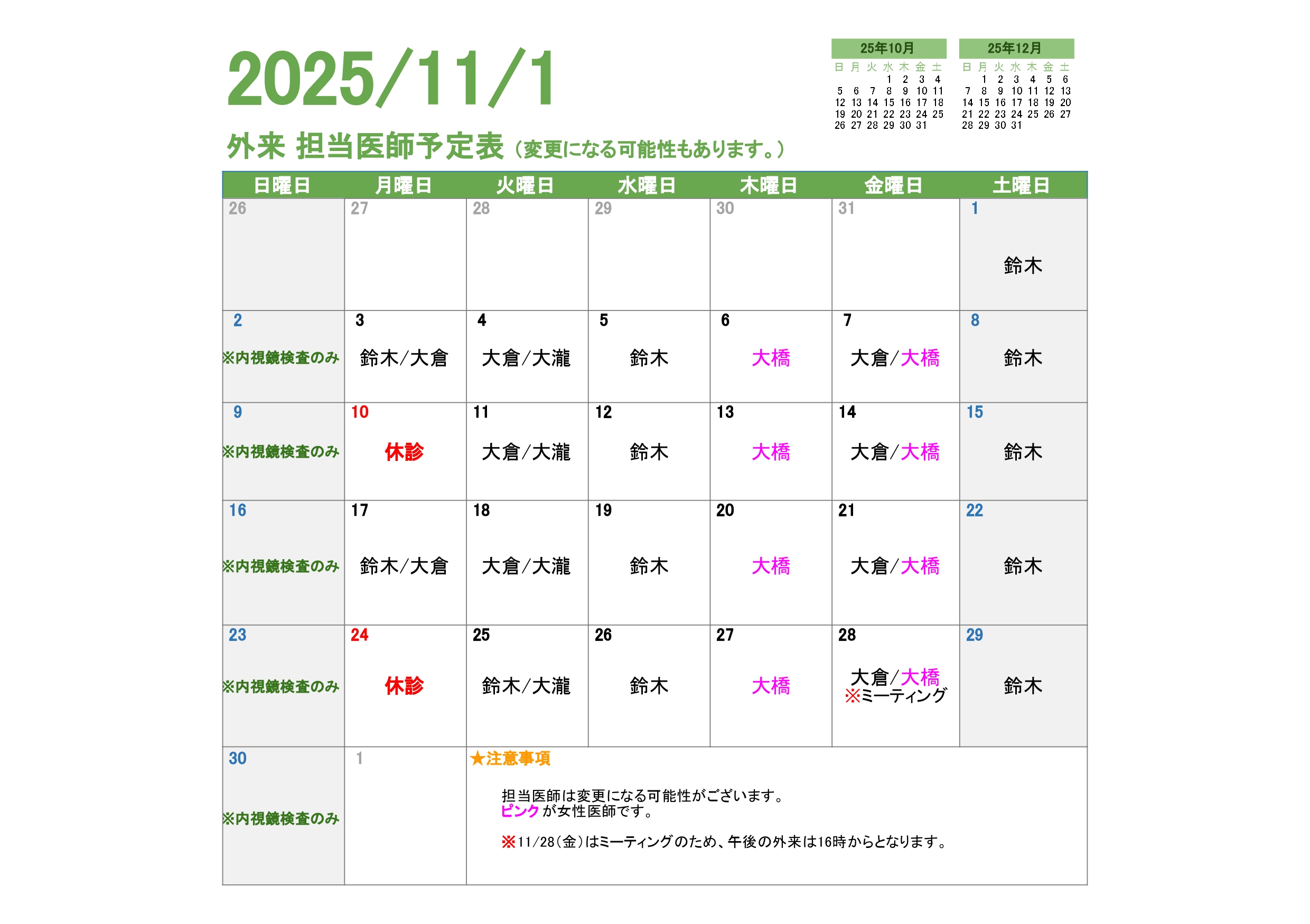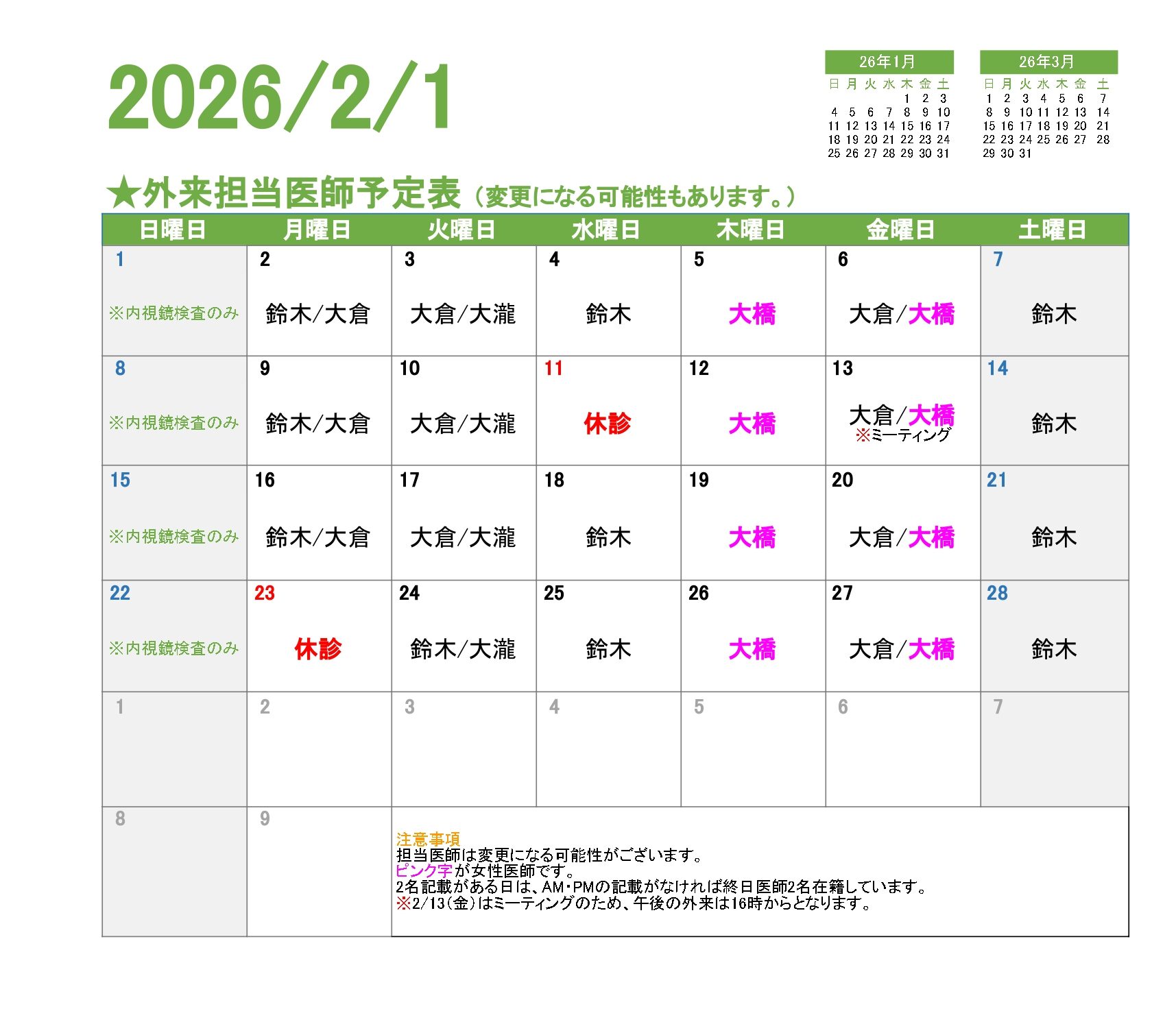 女性の方も安心して胃カメラ・大腸カメラ検査が受けられる体制を整えています。