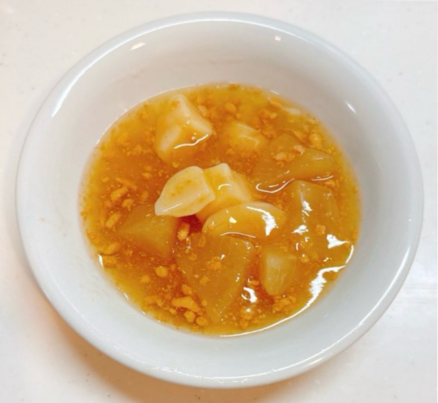 優しい味ですが大根にもじゃがいもにも味が染みており、おかゆもすすみます。